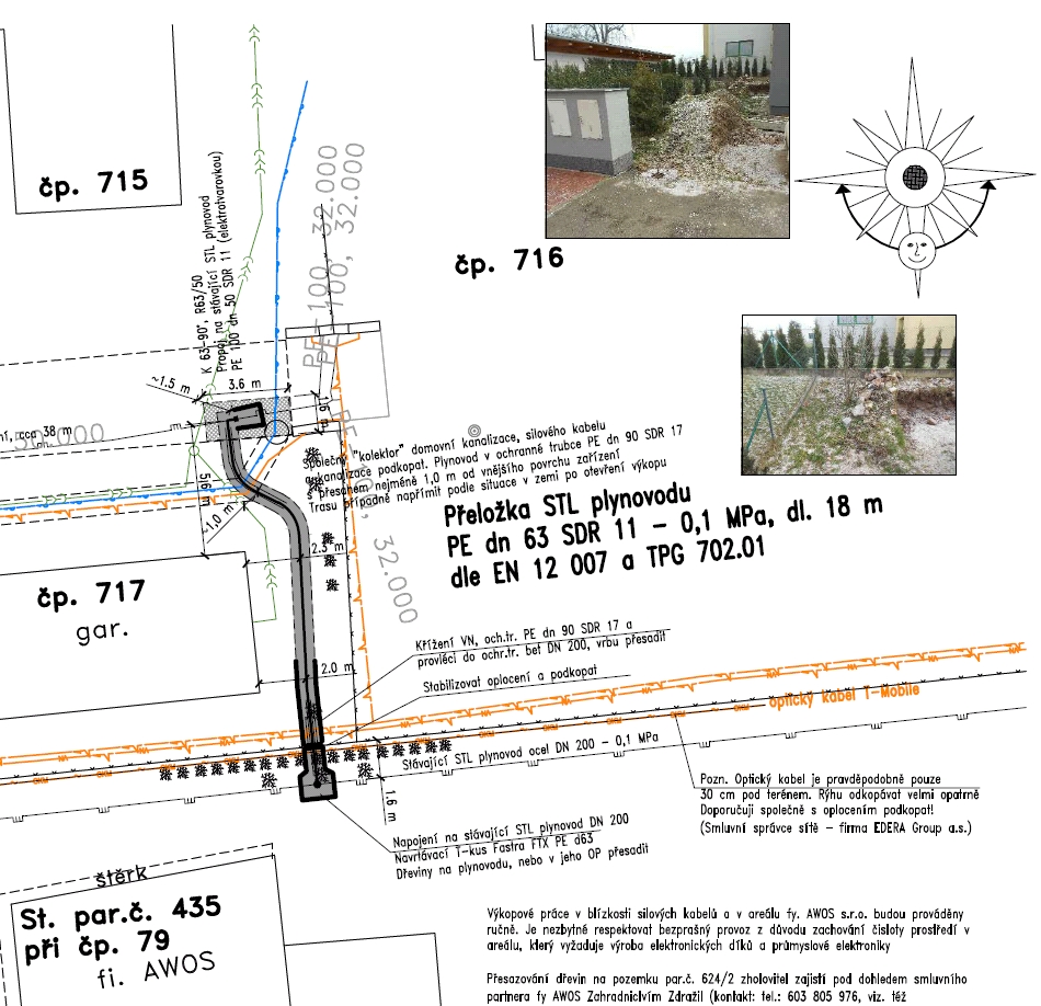 Přeložka STL plynovodu PE d 63 v délce 18 m.