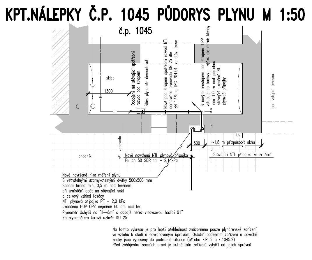 Stavba rekonstrukce plynovodu a plynových přípojek je vyvolána právě z důvodu stávajícího nevyhovujícího technického stavu v důsledku stáří potrubí. Jedná se o výměnu v osmdesátých letech pokládaného polyethylenového potrubí slabší kvality (v té době PE materiál byl pro použití v plynárenství na našem území novinkou), což bylo potvrzeno měřitelnými úniky zemního plynu. Vymístění HUP OPZ do země, jak je na přiložené fotografii považujeme za naprosto krajní řešení, kdy nejsou možné jiné dohody s vlastníky plynofikovaných nemovitostí. Vlastníkům tuto volbu vysloveně nedoporučujeme.