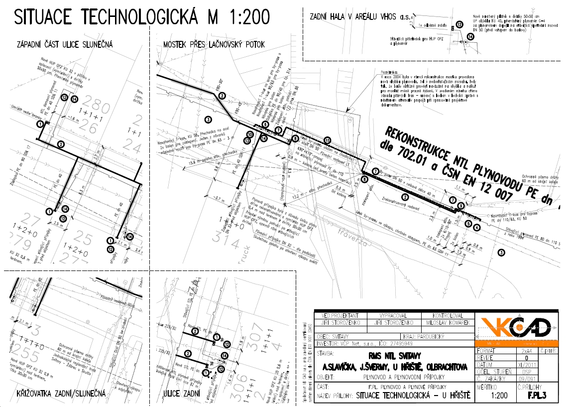 Původně téměř rutinní projekční příprava oprav NTL plynovodu drtivě narazila na dřívější koordinační nedostatek, způsobený typickými administrativními úkony omezujícími kvalitu příprav podobných záměrů a jistě i časovou tísní při čerpání dotací. V minulosti provedené přeložení plynovodu pod vodním tokem spojené s oprav mostku bylo totiž provedeno bez logické návaznosti na budoucí obnovu sítě. Projekt se proto musel vypořádat nejen se stísněními podmínkami pro provedení propojů (tj. včetně balonování, by-passů s vytvořením specielního harmonogramu práce), ale též s vleklým projednáním stavby se správcem toku. Část odběratelů byla podle plánu přepojena na stávající STL plynovod.