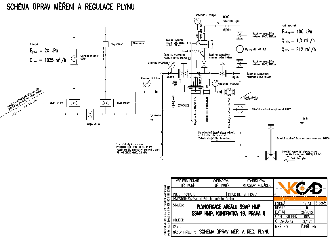 I. etapa- plynové průmyslové rozvody v zemi v délce 400 m k připojení 6 odběrných míst. II. Etapa – plynová kotelna III. kategorie v administrativní budově s konedzačními kotli instal. výk. 170 kW, vytápění kanceláří a stanice RZS dvěma plynovými kondenzačními kotli 56 kW, část kotelny II. kategorie s výkonem 300 kW. III. etapa část kotelny II. kategorie s 2 kondenzačními kotli s výkonem 464 kW, vytápění centra MP, vytápění skladů a servisu teplovzdušnými jednotkami. IV. etapa vytápění garáží teplovzdušnými jednotkami 210 kW
