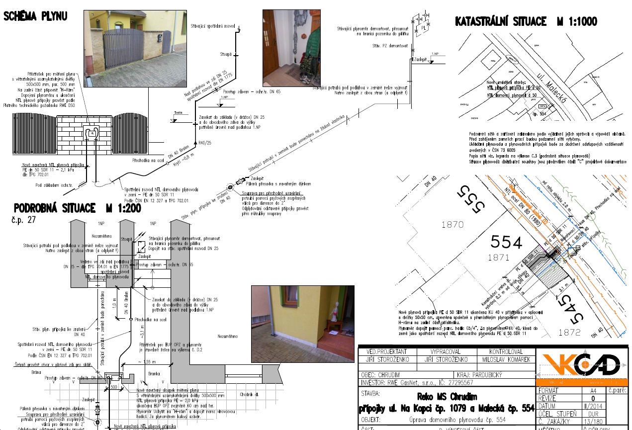 (2016) Rekonstrukce dvou NTL plynových přípojek s přepojením odběratele na STL, přepojení dvou odběratelů na STL plynovod, v délce 50 m, z toho 47 m domovní plynovody