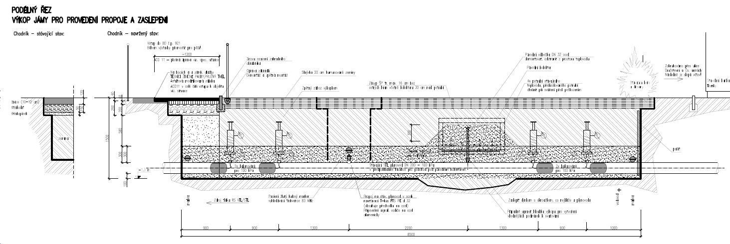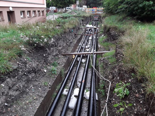 Odstranění závady zjištěné při rušení kolektoru a pokládce rozvodů tepla z předizolovaného potrubí v sídlišti. Nově uspořádány sítě v souladu s platnými ČSN.